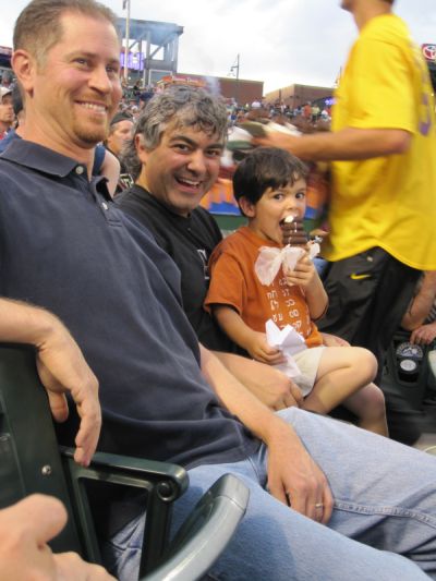 From left: My hubby, Sara’s hubby, and their son clearly demonstrates the other way to enjoy the game!